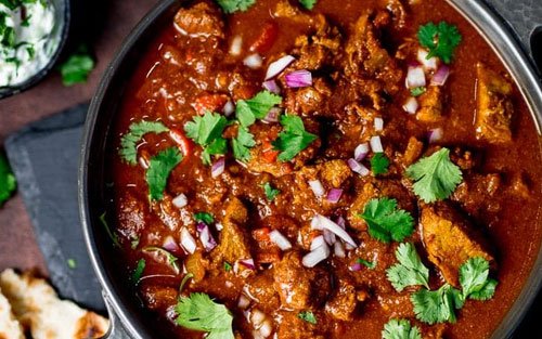 A special dish from india cooked in gravy with herbs and spices