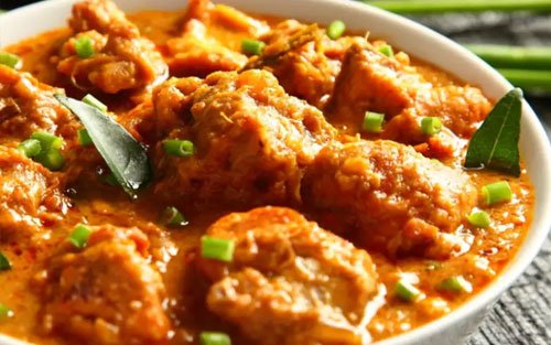 Chicken cooked with onions, garlic and with fresh coconut milk