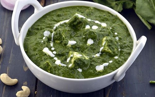 Flavor full little chunks of fresh homemade cottage cheese cooked with fresh spinach and freshly ground spices.